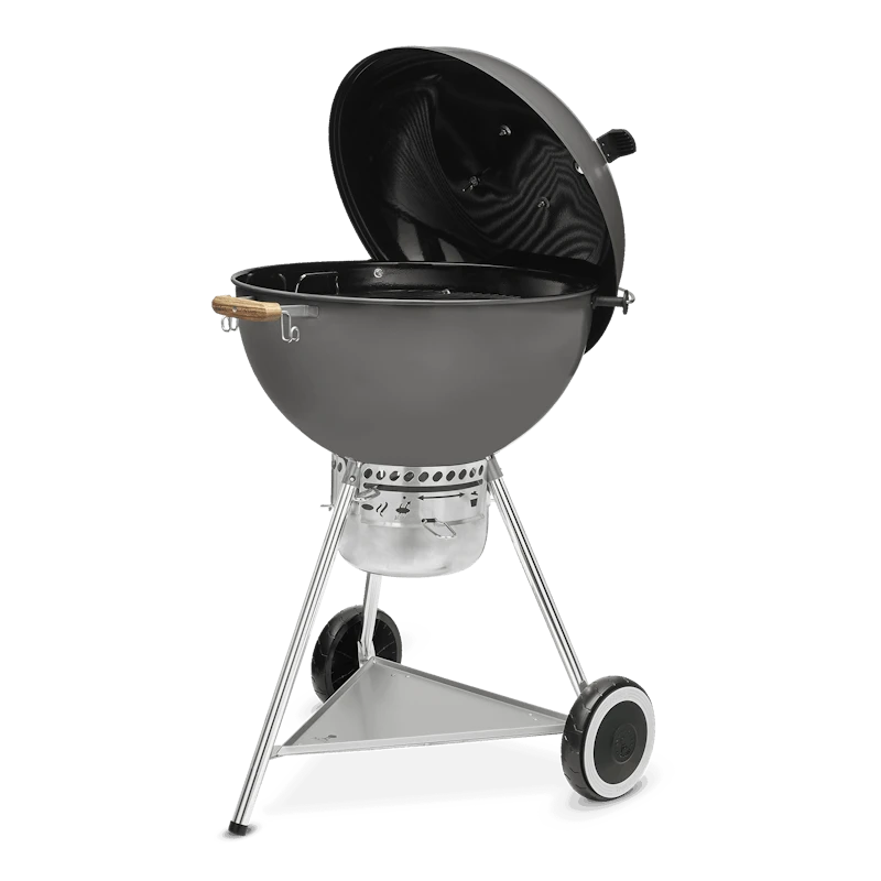 • Nylon handgrepen in houtlook lijken op die van de kettle houtskoolbarbecues uit de jaren 80 en 90