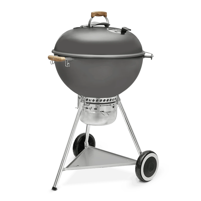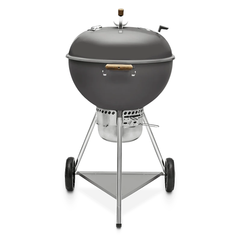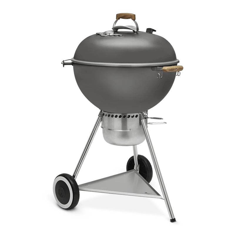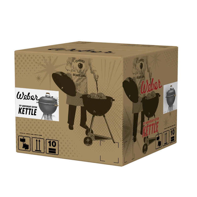 De 70e jubileumeditie Kettle is een hoogwaardige Weber-houtskoolbarbecue zoals je van ons gewend bent, waarin nostalgische elementen prachtig worden gecombineerd met moderne functies. In de doordachte gedetailleerde buitenkant vind je diverse verwijzingen naar verschillende tijdperken van de geschiedenis van Weber. Het met de hand aangebrachte email in Hollywood grijs herinnert aan klassieke films uit de jaren vijftig van de vorige eeuw toen de kettle het levenslicht zag. Andere retrokenmerken zijn een stevige opbergplank onderin, een dekselthermometer met jaren 50-thema, whitewall-wielen en nylon handgrepen in houtlook. Dit alles komt samen om een barbecue-ervaring te creëren die het waard is om te vieren.