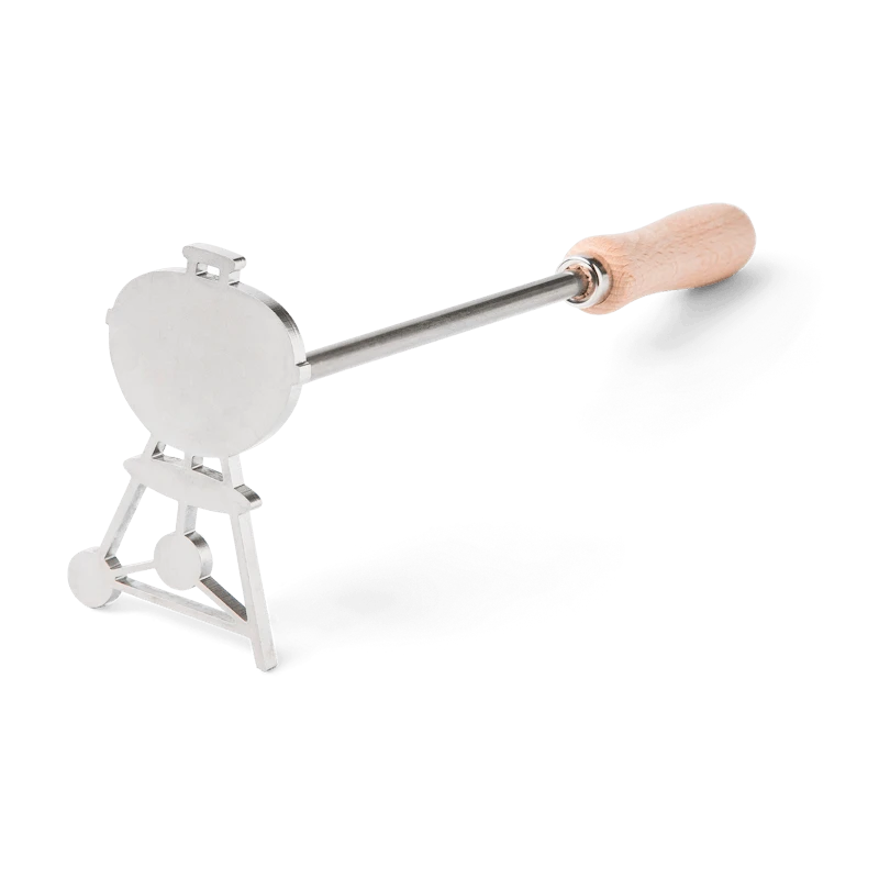 Druk uw stempel op het eten en claim alvast uw steak met dit brandijzer in de vorm van een Weber® Kettle. Met dit robuuste, stalen brandijzer geeft u het vlees een persoonlijke touch en door de grillmarkering maakt u zeker indruk op uw gasten.