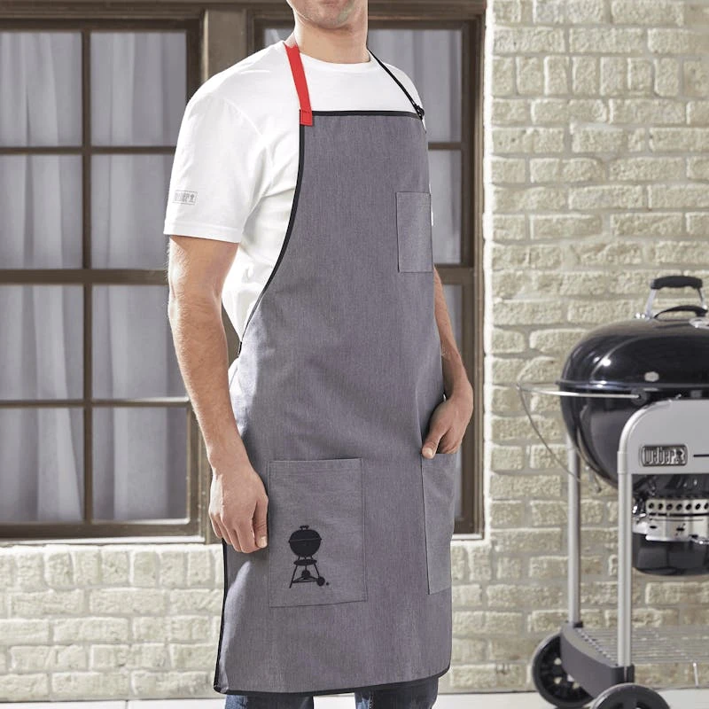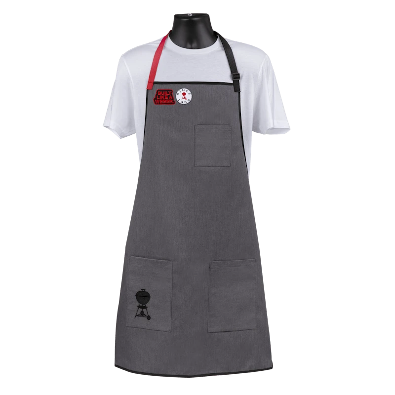 Ons Limited Edition Collectors-schort, uitgekozen door Weber-Grill Masters, geeft je barbecuevaardigheden zeker een boost terwijl je netjes en schoon blijft. Het ontwerp op basis van één maat die bijna iedereen past heeft een verstelbare halsband en koordjes om de taille. Dankzij de handige gereedschapszakken heb je eenvoudig toegang tot je tang, kruiden, vleesthermometer of mobiele telefoon. Maak dit schort echt persoonlijk met Weber-emblemen (afzonderlijk verkrijgbaar).