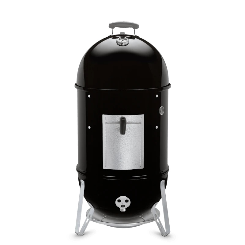 Met haar strakke, porselein-geëmailleerde ketel, deksel, hoge centrale kolom en ingebouwde waterbak en char ring is de Smokey Mountain Cooker Smoker speciaal ontworpen om zo ongeveer elke soort voedsel een heerlijke rooksmaak te geven. Door de hoogte wordt voedsel de juiste afstand van de hittebron af gehouden, terwijl de waterbak druipvet opvangt, stoomt, de temperatuur stabiliseert, sappigheid toevoegt, en urenlang een ‘low-and-slow’ temperatuur in stand houdt. Vier roestbestendige aluminium ventilatieroosters helpen de luchtstroom in de kookruimte te regelen, de ingebouwde dekselthermometer helpt de temperatuur in het oog te houden, en een met glas versterkt nylon handvat beschermt uw hand tegen de hitte. Bovendien kunt u op elk moment brandstof aan de houtskoolkamer toevoegen via het roestbestendige aluminium brandstofluik.